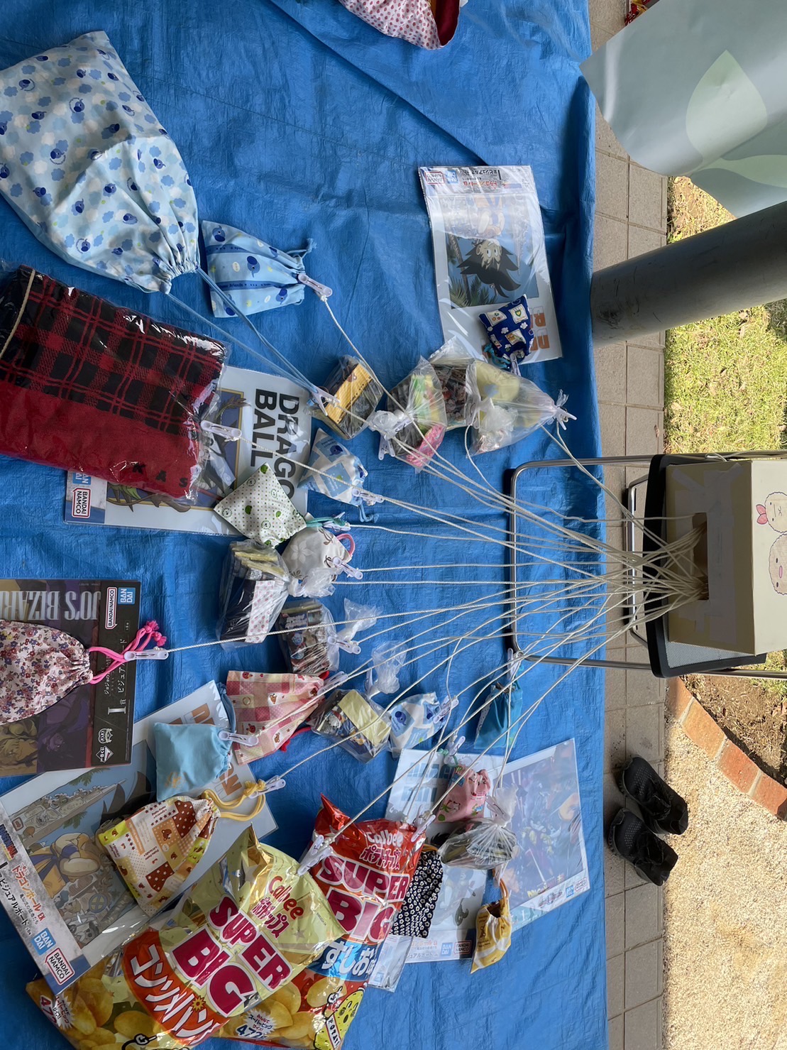 子どもから大人まで、もらって嬉しい景品を取り揃えて、「これだ!」と思う一本の紐を引いてもらいました。